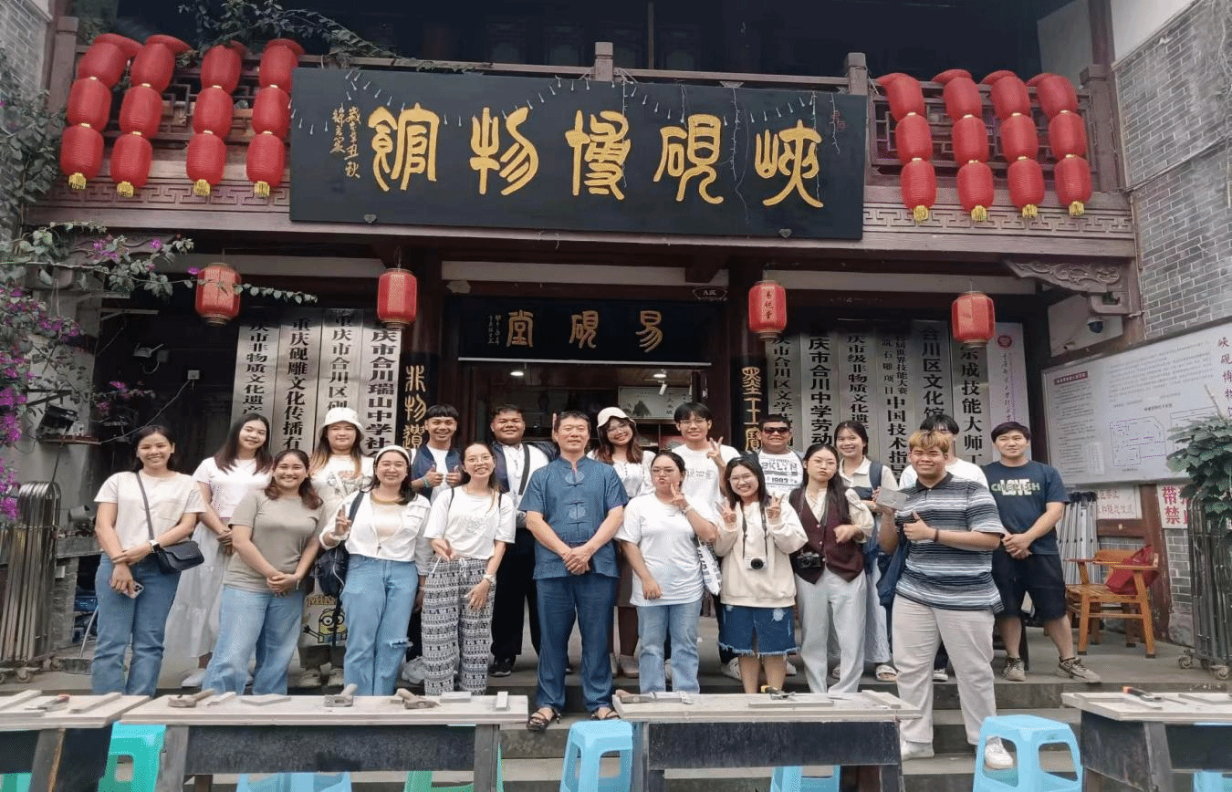 此外,我院还安排了丰富的城市游览活动,泰国学子们游览了重庆的标志性景点,如合川文峰古街、李子坝轻轨穿楼、解放碑、十八梯、洪崖洞夜景等,亲身感受了重庆这座城市的独特魅力和历史文化底蕴。这些地标建筑的参观,不仅让学子们更加深入地了解了重庆的风土人情,也增进了他们对中国的认识和喜爱。