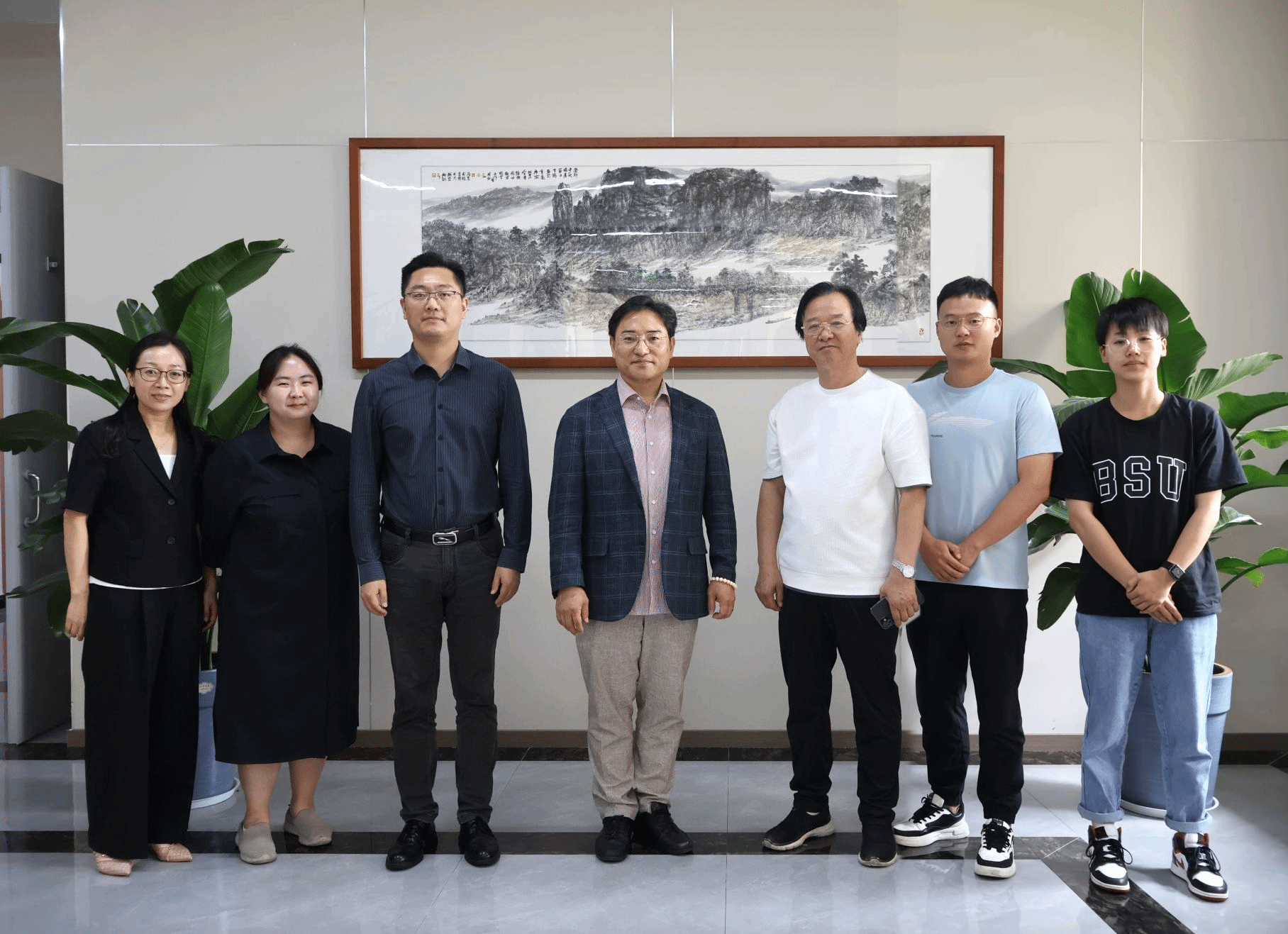 韩国圆光大学国际处姜延锡处长一行在艺术设计学院院长姜百瑞引领下参观学校美术馆