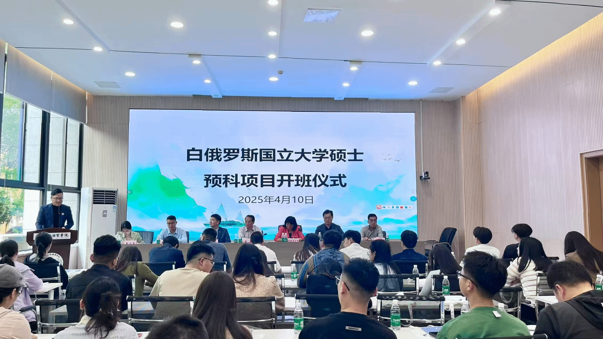 2025年4月10日下午,122cc太阳集成与白俄罗斯国立大学合作举办的硕士项目预科开班仪式在A校区9106举行。 122cc太阳集成执行校长董志,白俄罗斯国立大学中国创新教育研究院院长斯维特兰娜、行政副院长杨森,校方代表陈江川、曹建华等出席,授课教师、全体学员参加。开办仪式由国际交流合作处处长刘用主持。