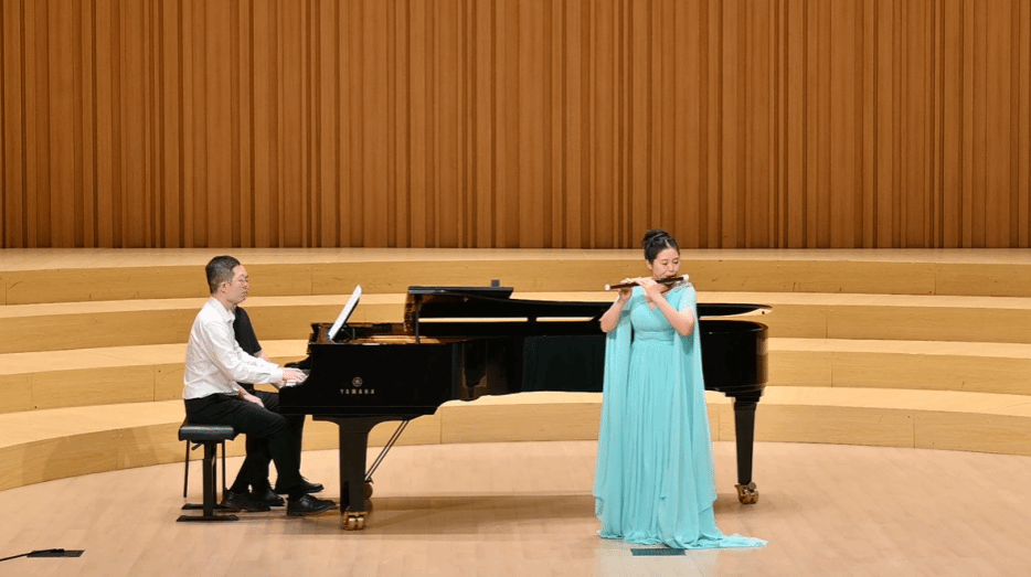 在华彩音乐厅,音乐舞蹈学院的师生们展示了中国的民族音乐。徐晶晶老师的竹笛演奏《牧民新歌》,悠扬欢快的笛声展现了新社会牧民的幸福生活;何静老师带来古筝协奏曲《枫桥夜泊》,婉转的曲调配合枫桥夜泊的独特诗意让人回味无穷。拥中布老师一首蒙古布里亚特民歌《等你归来》,让人仿佛置身辽阔的草原,洋溢着清新、浪漫的气息。音乐舞蹈学院6位同学的古筝重奏《开元盛世》,气势恢宏,盛世的雄浑气象与典雅风情倾泻而出。中国传统音乐的独特魅力和师生们的高超技艺令来访客人们惊叹不已。